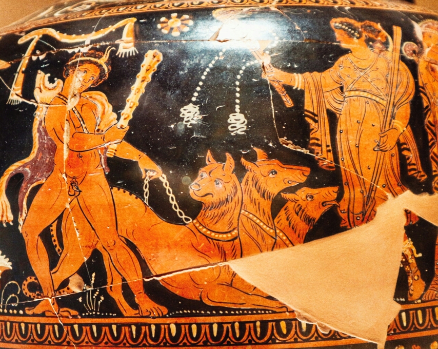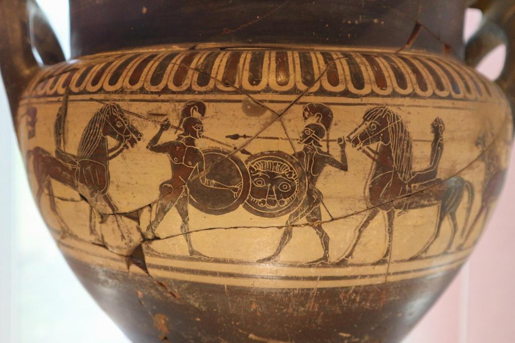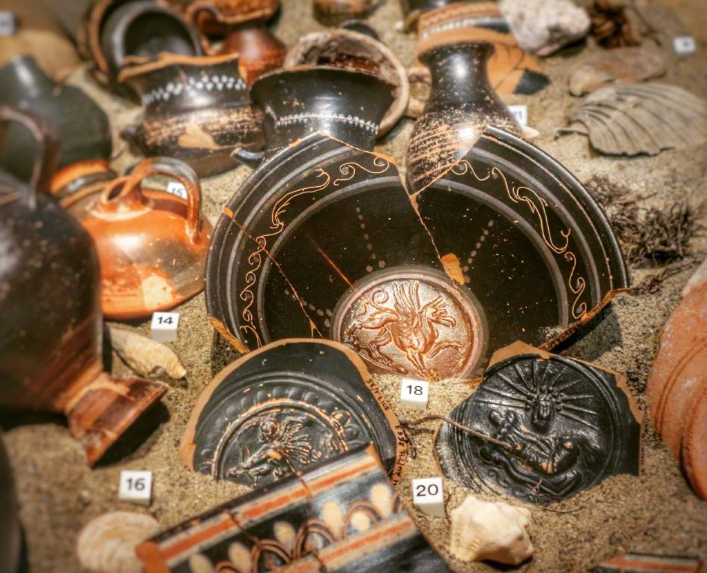 Non si può non fare i conti col mito. È un vero sostrato culturale, non è solo racconto, ma linguaggio figurativo i cui codici sono immediatamente comprensibili e recepiti dalle coste tarantine e pugliesi a quelle campane. I vasi apuli da Altamura, nelle loro narrazioni così esuberanti, mostrano Cerbero e gli dei Inferi, Bellerofonte contro la Chimera, insieme al racconto della battaglia di Alessandro Magno contro Dario, nelle stesse forme che verranno utilizzate due secoli dopo nel Mosaico di Alessandro della Casa del Fauno: non solo miti, dunque, ma iconografie. E oggetti. Il Mediterraneo nel II secolo a.C. è un mercato comune: in due vetrine poste accanto, una relativa a un butto, un mondezzaio di Pompei, l’altro da un mondezzaio dell’agorà di Atene, troviamo le stesse identiche tipologie ceramiche, le stesse olle, le stesse pentole, le stesse coppe.