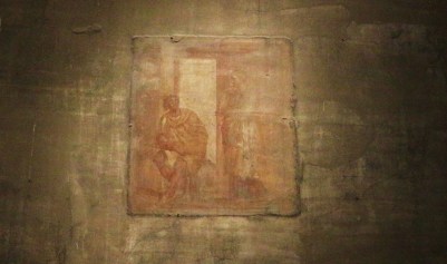 un affresco dal macellum di Pompei illuminato e inserito nel percorso di visita notturna