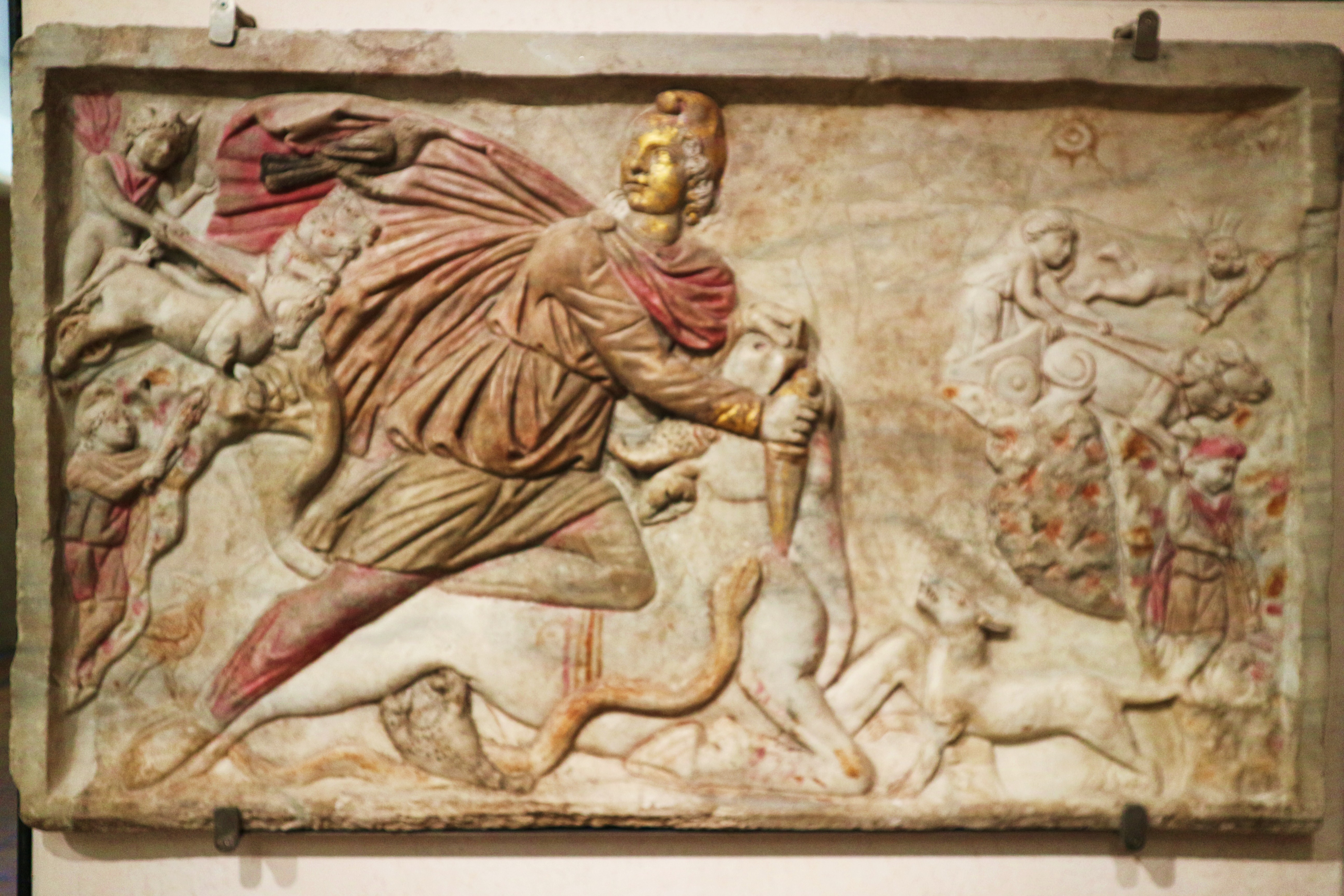 Divinità orientale, il culto di Mithra si diffuse nell’Occidente romano per il tramite dei soldati delle legioni impegnate sul limes orientale; presto però prese piede anche tra le classi elevate della società romana. Era una religione salvifica e iniziatica, che prevedeva per il fedele sette livelli successivi di iniziazione. In quanto iniziatica, il culto non era pubblico e non si svolgeva in un tempio alla luce del sole, ma ad esso solitamente era dedicato un ambiente ipogeo, dunque sotterraneo, il mitreo, sulla cui parete di fondo si trovava la statua di culto o la rappresentazione del dio: un giovinetto che indossa il berretto frigio, dalla forma vagamente triangolare, mentre sgozza un toro. Il mitreo sotto la chiesa di San Clemente a Roma è probabilmente il più noto, ma mitrei si trovavano anche fuori dall’Urbe (ad esempio a Marino, o a Vulci, entrambi nel Lazio). Quando non si individua l’ambiente ipogeo nel quale si svolgeva il culto, è il rinvenimento della statua di Mithra che ne lascia intuire la presenza: è ad esempio il caso della città romana di Sentinum nelle Marche (Sassoferrato, AN), dove il rinvenimento ottocentesco di una statuetta del dio ha permesso di ipotizzare la presenza di un mitreo, magari nella casa privata di un qualche illustre cittadino, che però gli scavi archeologici ancora non hanno individuato (del resto, tranne che l’insula del Pozzo, a Sentinum sono stati indagati archeologicamente solo edifici pubblici); è il caso di Cavriglia, dove ancora non è stato individuato il mitreo, anche se il rinvenimento di una stanza absidata nell’area degli scavi della Pieve (oggi interpretata piuttosto come villa rustica, residenza fuori città di un qualche personaggio altolocato magari della vicina Arretium/Arezzo) potrebbe, forse, far ipotizzare.