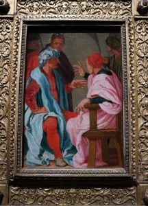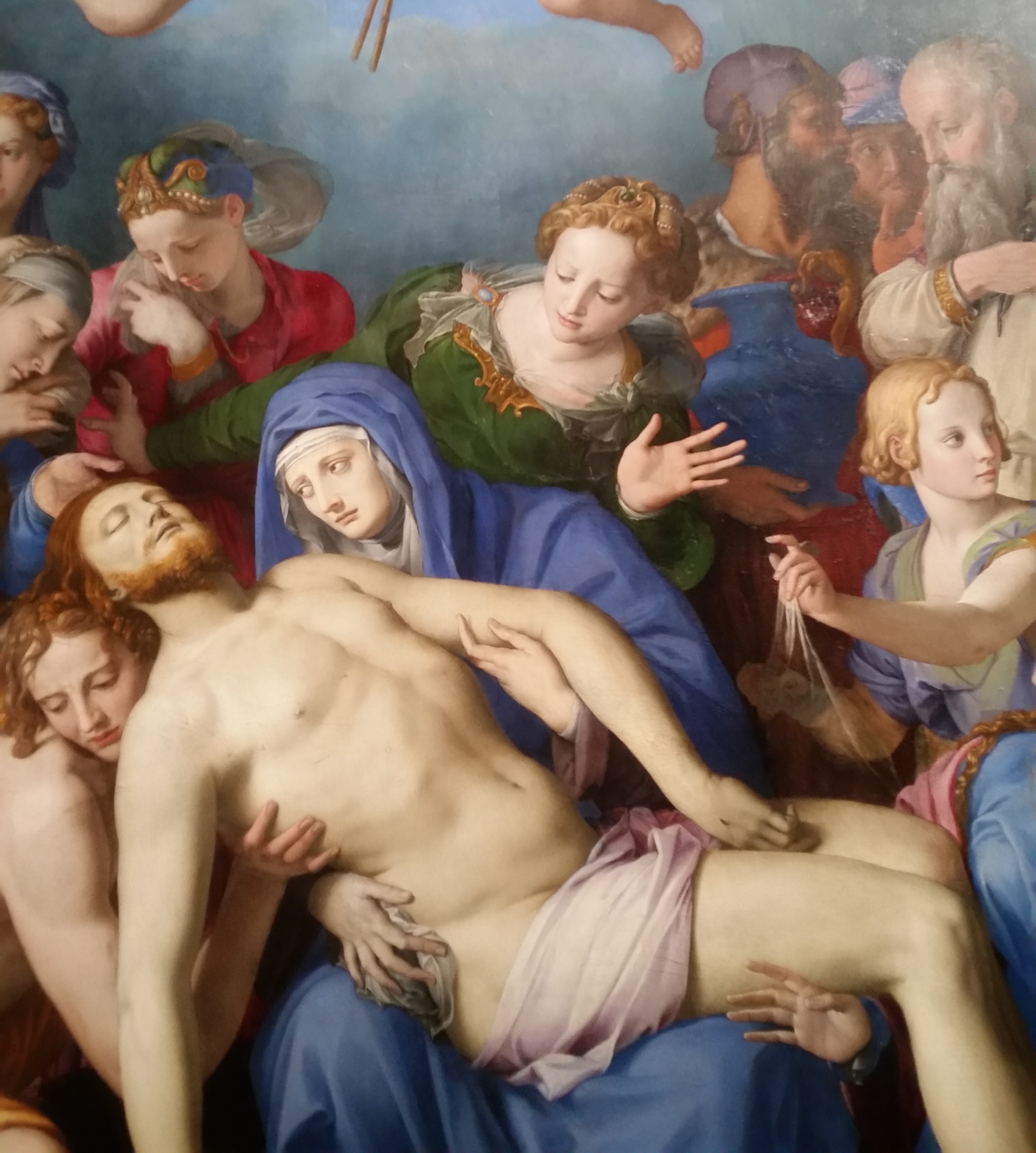 • Agnolo Bronzino, Cristo Deposto. La Cappella privata di Eleonora di Toledo è un piccolo ambiente all’interno degli Appartamenti privati dell’amatissima moglie di Cosimo I Medici in Palazzo Vecchio. Il fulcro della stanza è il Cristo Deposto dipinto dal Bronzino che con i suoi colori accesi vivacizza lo spazio angusto. Ma prima di questa pala che oggi tutti possono vedere in Palazzo Vecchio, il Bronzino aveva già dipinto un’altra pala, con soggetto analogo, che però fu donata da Cosimo I a Nicolas Perrenot de Granvelle, segretario particolare dell’imperatore Carlo V, originario di Besançon, che intratteneva rapporti politici con Firenze. Così la pala, che aveva visto la luce in riva all’Arno, fu trasferita in una cittadina, Besançon, che sorge nell’ansa del fiume Doubs. Correva l’anno 1545. Da quella data non fece più ritorno in Italia e al Bronzino, qualche tempo dopo, fu commissionato un dipinto con identico soggetto per la solita Cappella privata di Eleonora.