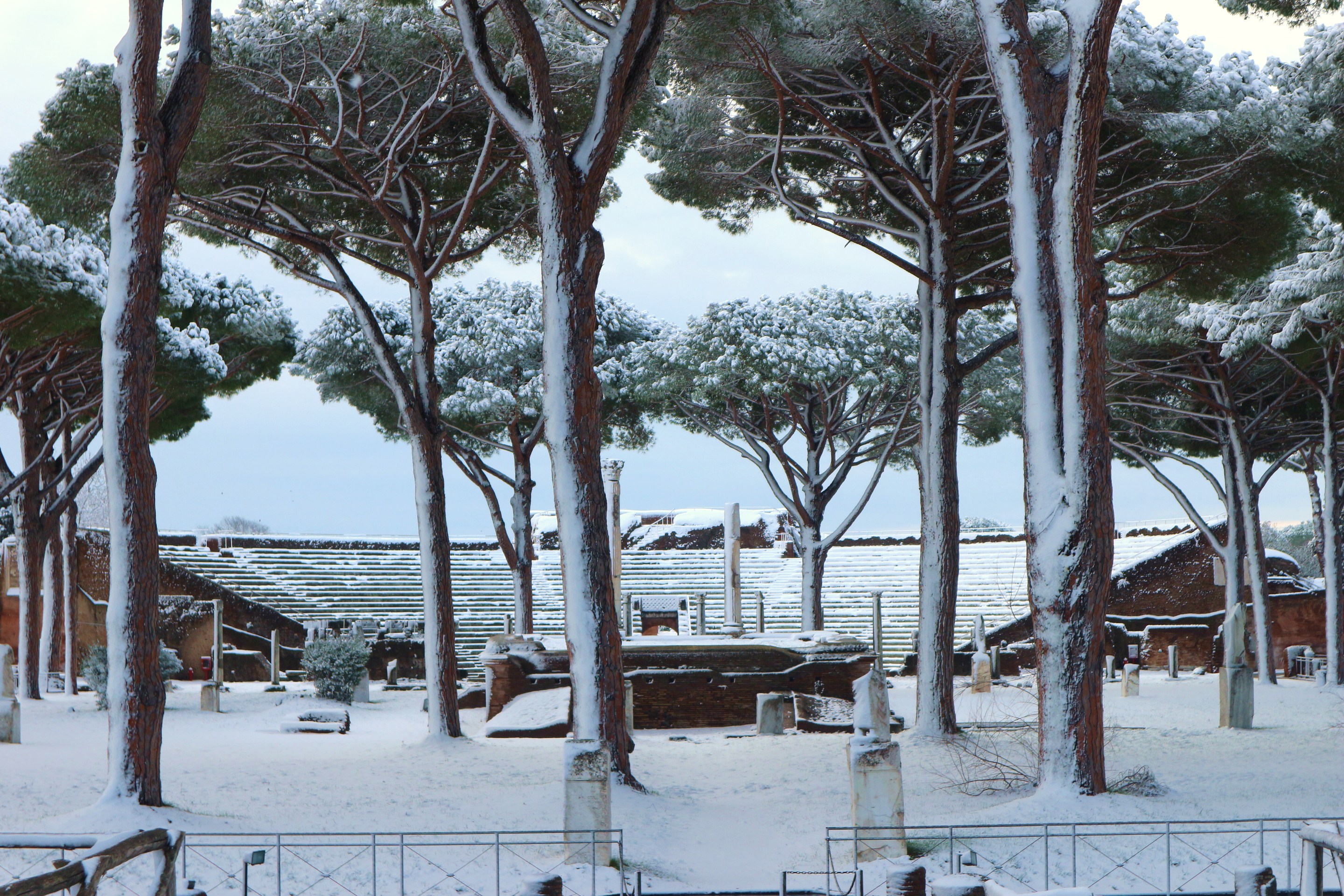 Che lavorare ad Ostia antica per me sia un privilegio, l’ho già detto in passato. Oggi il privilegio è stato quello di poter calcare, nel giorno di chiusura del Parco, il basolato innevato come spettatrice pressoché unica. Se Ostia è un luogo magnifico tutti i giorni dell’anno, oggi essere qui è addirittura magico.