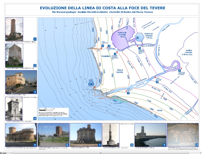 1. […] porto fu costruito lungo il litorale, all’epoca molto ritratto rispetto all’attuale (v. Convegno “Alle foci del Tevere”), con due grandi moli a Nord e a Sud che creavano un grande bacino nel quale le navi transitavano, […]