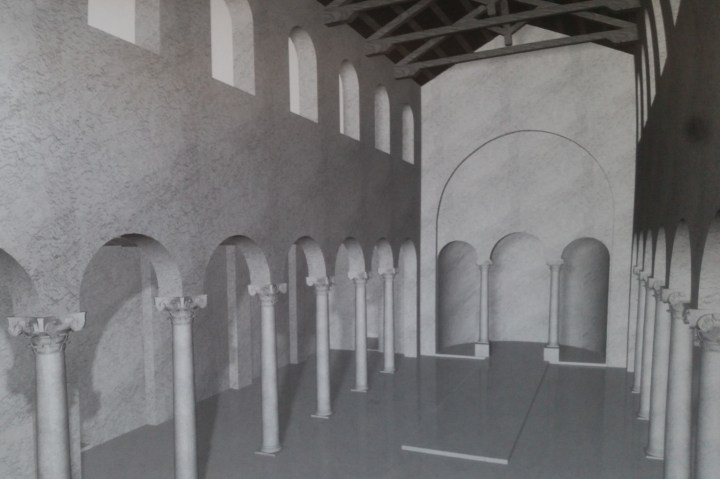 Ricostruzione della Basilica Portuense nella sua prima fase come edificio di culto – V secolo (Fonte: Maiorano, Paroli, La Basilica Portuense)