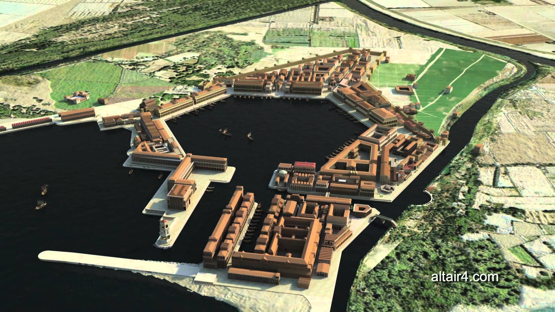 Ricostruzione di Portus: l’immagine è tratta da questo video youtube di Altair4.com