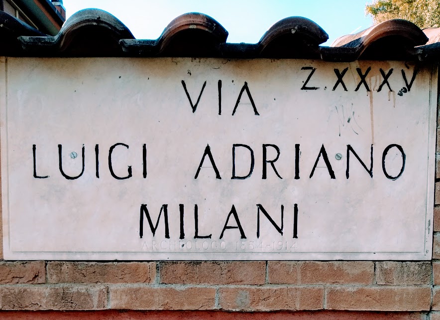 Non posso dimenticare così in fretta il mio recente trascorso al Museo Archeologico Nazionale di Firenze, per cui non ho potuto fare a meno di notare alcuni nomi importanti per l’archeologia toscana, fiorentina in particolare, e per l’etruscologia: via Gian Francesco Gamurrini, Via Luigi Adriano Milani, Via Luigi Pernier e Via Antonio Minto sono le strade che mi portano proprio al Museo Archeologico Nazionale di Firenze quando ancora si chiamava Regio Museo alle antichità d’Etruria e prima ancora semplicemente Museo Etrusco; Gian Francesco Gamurrini fu infatti il fondatore del Museo Etrusco a Firenze nel 1871, allestito nella sede del Cenacolo del Fuligno (qui tra l’altro lo visitò George Dennis); Luigi Adriano Milani fu il primo grande direttore del museo, quand’esso fu spostato nella sede attuale del Palazzo della Crocetta: egli volle un museo “topografico” d’Etruria, in cui città per città si potessero distinguere le produzioni e i materiali; sua fu l’idea di ricostruire nel giardino del Palazzo della Crocetta alcune tombe etrusche. Sotto la sua direzione, infine, accadde quel fatto increscioso per cui un custode che voleva aggredire un suo collega mandò in frantumi il Vaso François; gli seguì Luigi Pernier, che alternò sempre la sua occupazione a Firenze anche in qualità di Soprintendente degli scavi e dei musei archeologici d’Etruria alla sua attività scientifica a Creta; infine Antonio Minto, che fu direttore nell’epoca fascista e durante la II Guerra Mondiale. Sul blog del Museo Archeologico Nazionale di Firenze trovate molto di ciò cui qui ho accennato, e molto di più.