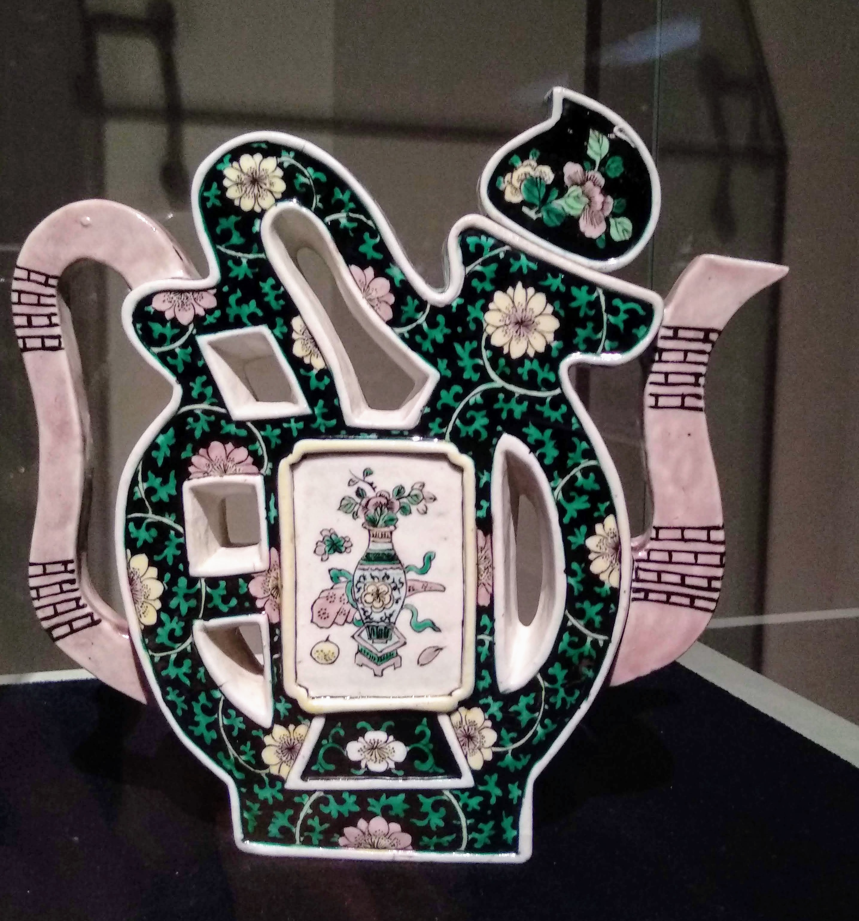 Al piano terra, infatti, abbiamo due ali che corrispondono a due collezioni totalmente diverse. Una è la collezione di cineserie, tra cui teiere, vasi, armi di produzione cinese. Oggetti scelti più perché curiosi che non per un reale valore: vi sono molti oggetti moderni, anche degli inizi del XX secolo.