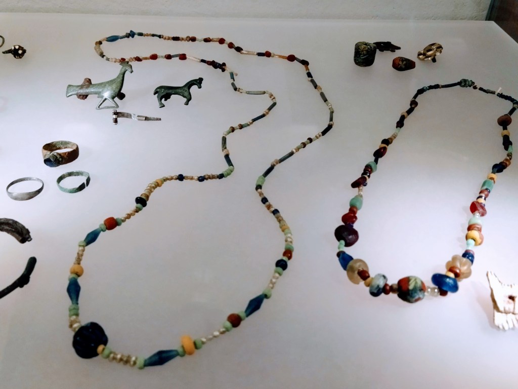 Andando al II piano l’esposizione permanente prosegue giungendo al medioevo, documentando l’epoca in cui il vescovo Albuino aveva autorità su queste terre: gioielli con pendenti in pasta vitrea colorata la fanno da padrone, mentre le finestre delle sale affacciano sull’immenso panorama delle montagne slovene. Sono bellissimi, sono assolutamente moderni nelle forme e nei colori.