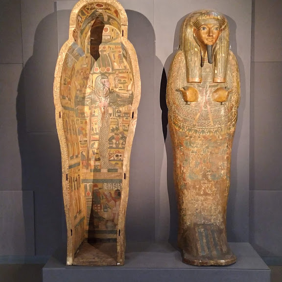 Il bellissimo sarcofago di Padimut, in legno stuccato e dipinto sia internamente che esternamente introduce al tema della mummificazione. Il sarcofago apparteneva a Padimut, sacerdote vissuto durante il Terzo Periodo Intermedio (1069-656 a.C.). La parte più interessante è la cassa interna dipinta con scene di offerta da parte del defunto a Osiride. Tra le varie scene, quella con Padimut di fronte alla propria mummia con in mano un testo geroglifico con dedica a sé stesso è la più interessante. Sui fianchi della cassa, su vari registri, è raffigurato il defunto mentre fa offerte a varie divinità.