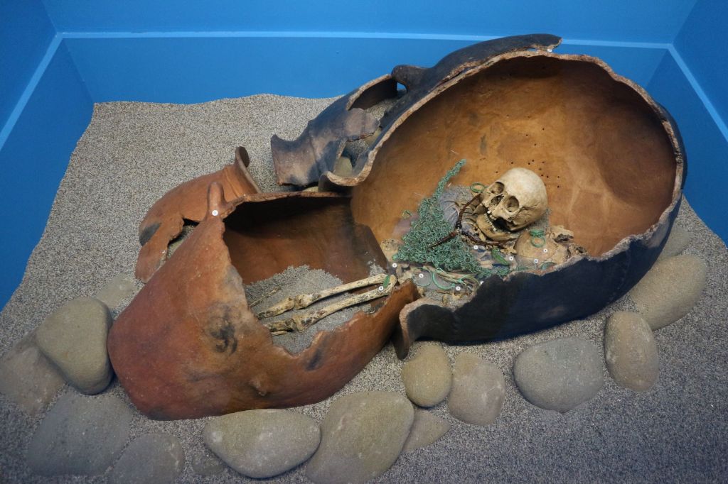 In un’epoca, il IX secolo, contraddistinta dalle sepolture a incinerazione, il rinvenimento di una doppia sepoltura infantile a inumazione all’interno di due pithoi, due grossi contenitori in terracotta, lascia interdetti. Eppure è il segno del passaggio dall’incinerazione, tipica dell’età villanoviana, ad un successivo e diverso modo di intendere la morte.