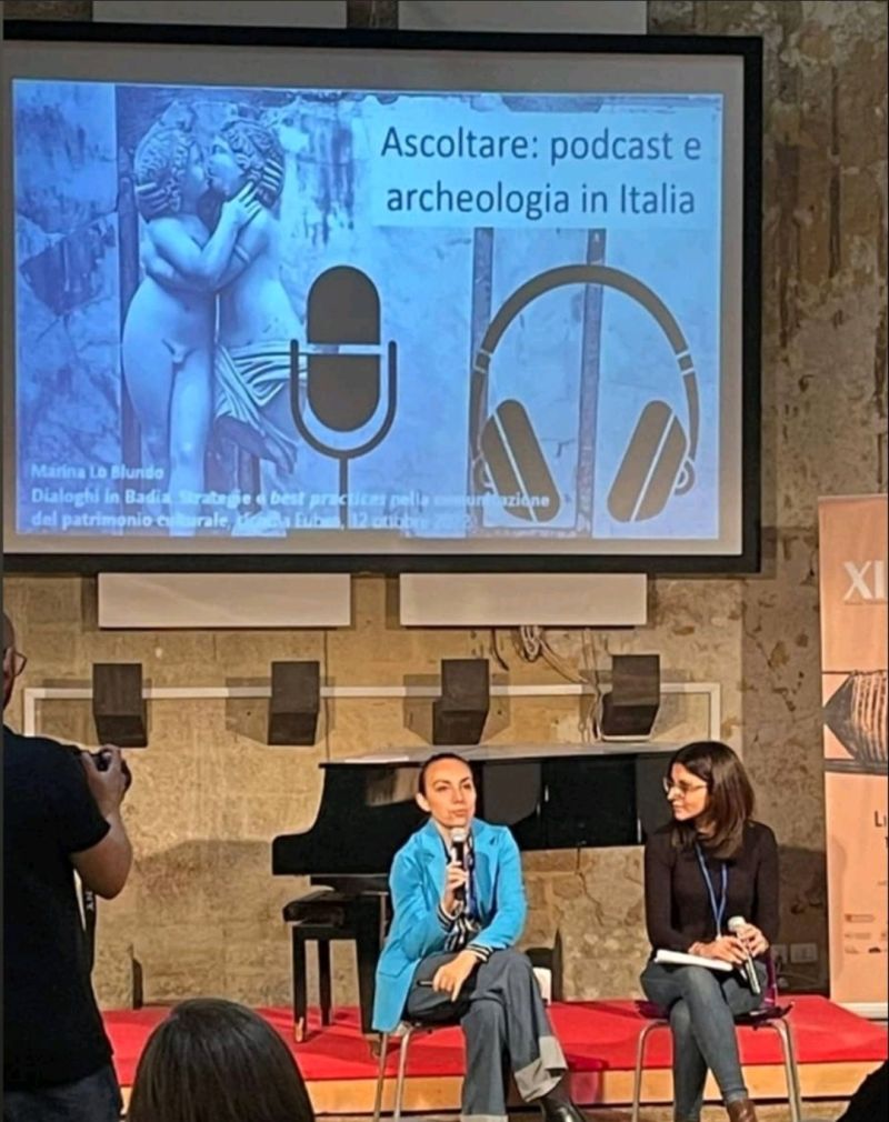Infine, l’ultimo intervento della giornata è stato il mio. “Ascoltare: podcast e archeologia in Italia” apparentemente si discosta dagli ultimi interventi, ma non più di tanto, considerato che il podcast, essendo uno strumento solo auditivo, può essere benissimo impiegato in progetti di accessibilità per disabili sensoriali (non vedenti).