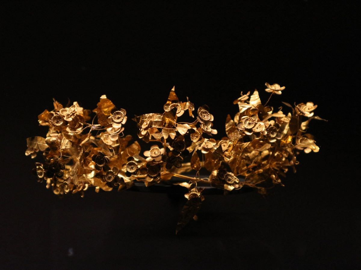 Corona/ghirlanda in oro con fiori di mirto. Necropoli di Pidna, Macedonia, 350-325 a.C.