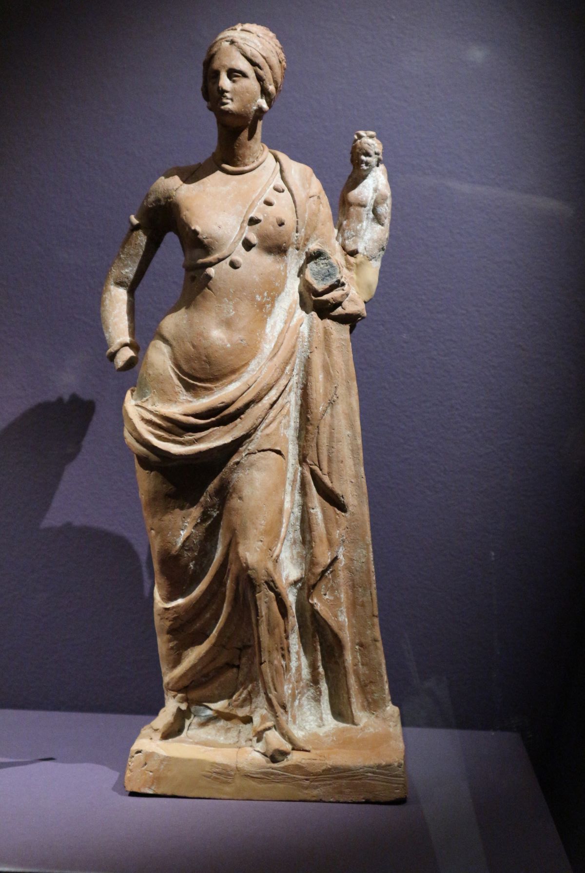 Statuetta fittile di Afrodite con Eros, seminuda, con indosso una fascia con pendenti, sul modello di quanto indossavano le vergini all’atto del matrimonio.