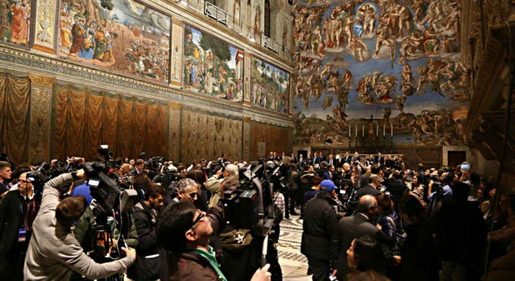 Mi viene in mente la situazione paradossale che si crea ogni giorno nella Cappella Sistina: nel vano tentativo di spegnere un brusio che è dovuto non a gente che parla ad alta voce, ma al solo fatto che contemporaneamente stazionano nella sala gruppi di decine di persone che possono sostare per un tempo limitato. Ebbene, vi assicuro che è molto più fastidioso il “Shhhh; Silenzio; Silence” che una voce registrata ripete ogni pochi minuti del brusio di fondo.