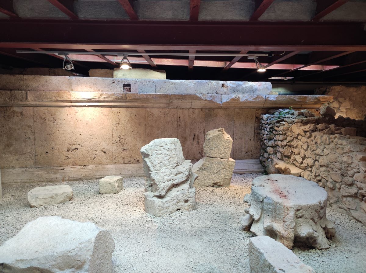 Per meglio comprendere ciò che Corso Marcelli ci rivela, occorre tornare su Piazza Andrea d’Isernia e oltrepassare il cancello adiacente alla facciata del duomo. Da qui alcune scale scendono nel sottosuolo. Un sottosuolo nel quale si torna indietro nel tempo di 2300 anni.