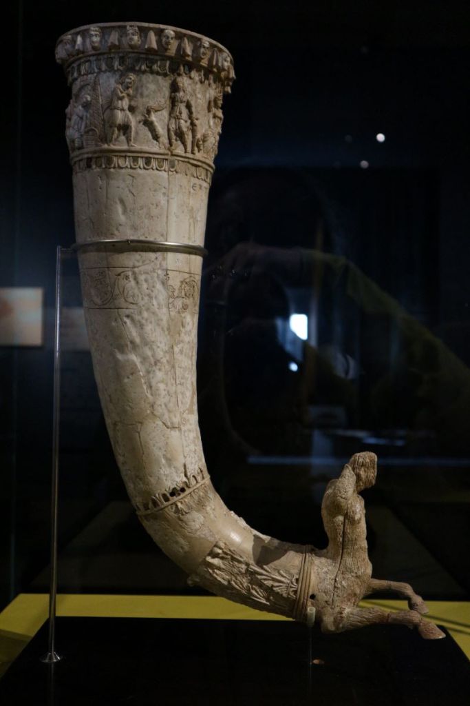 Una cosa emerge in mostra: l’influenza dell’arte ellenistica in questi territori, da quando i Parti entrano effettivamente in contatto con i Greci. Ecco che allora oggetti magnifici come i rhyta (corni potori per versare e per bere) in avorio intagliato non possono non attirare sguardi, curiosità e attenzione: rinvenuti a Nisa Vecchia nel 1948 dall’équipe russa che scavava l’antica città capitale dei Parti, sono una tipologia di oggetti unica nel suo genere; sicuramente frutto di scambi e incontri culturali e artistici tra il mondo greco e l’Asia Centrale – il rhyton è una forma ceramica diffusa nel mondo greco, che offre al ceramista e al pittore di dimostrare le rispettive qualità artistiche – la loro peculiarità è data dal materiale, l’avorio, e dalle raffigurazioni intagliate sulla superficie. Oggi appaiono privi di colore, ma dobbiamo immaginarli almeno in parte rivestiti in argento e bronzo, con intarsi di pietre semipreziose. Gli esemplari, 48 in totale, rinvenuti nella cosiddetta Casa Quadrata di Nisa, presentano un terminale che riproduce figure a tuttotondo fantastiche, animali, mitologiche o umane, mentre lungo il bordo superiore corre un fregio istoriato sormontato da una cornice altrettanto elaborata. Il fregio può raffigurare i dodici dei dell’Olimpo o scene legate al mondo dionisiaco.