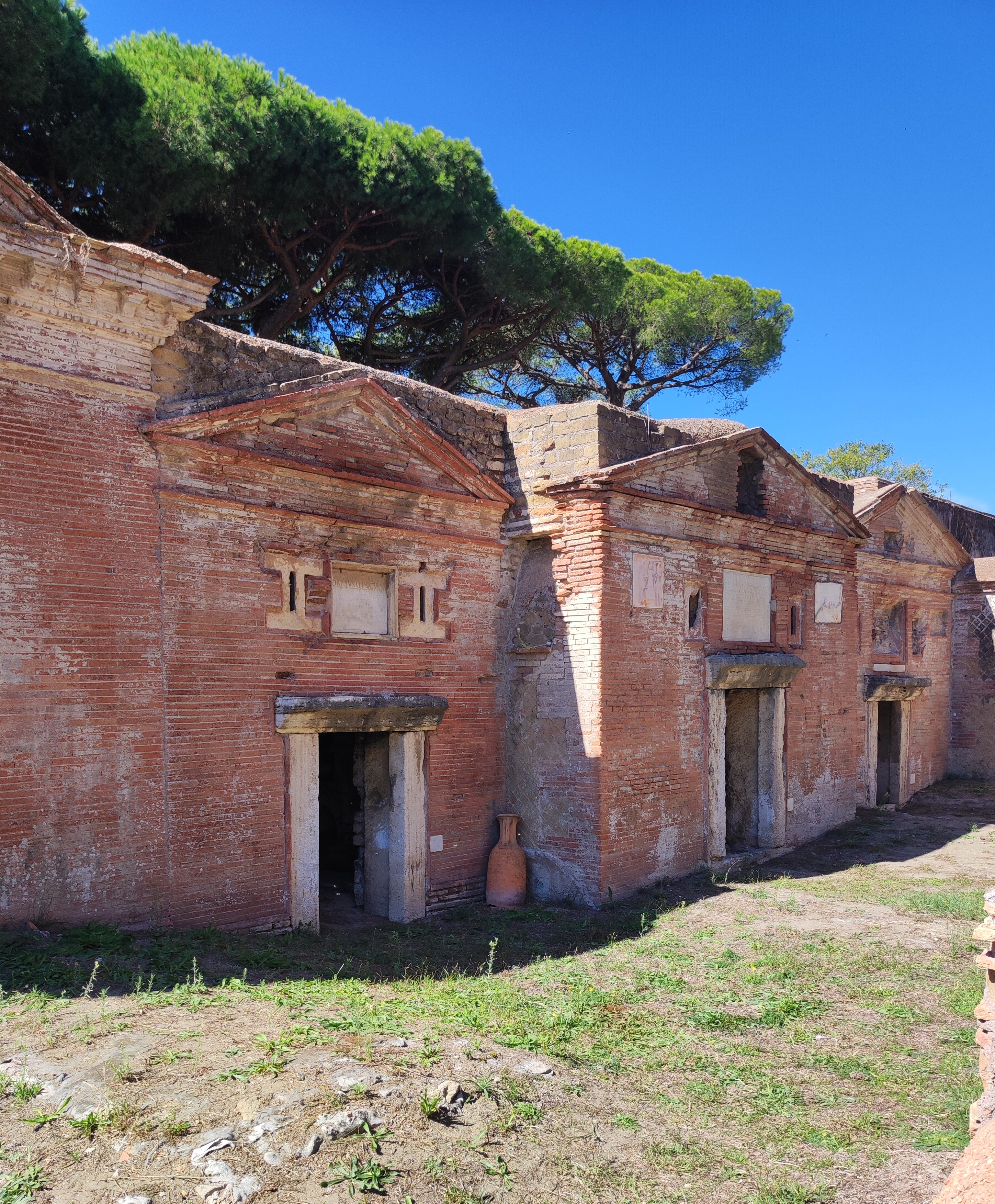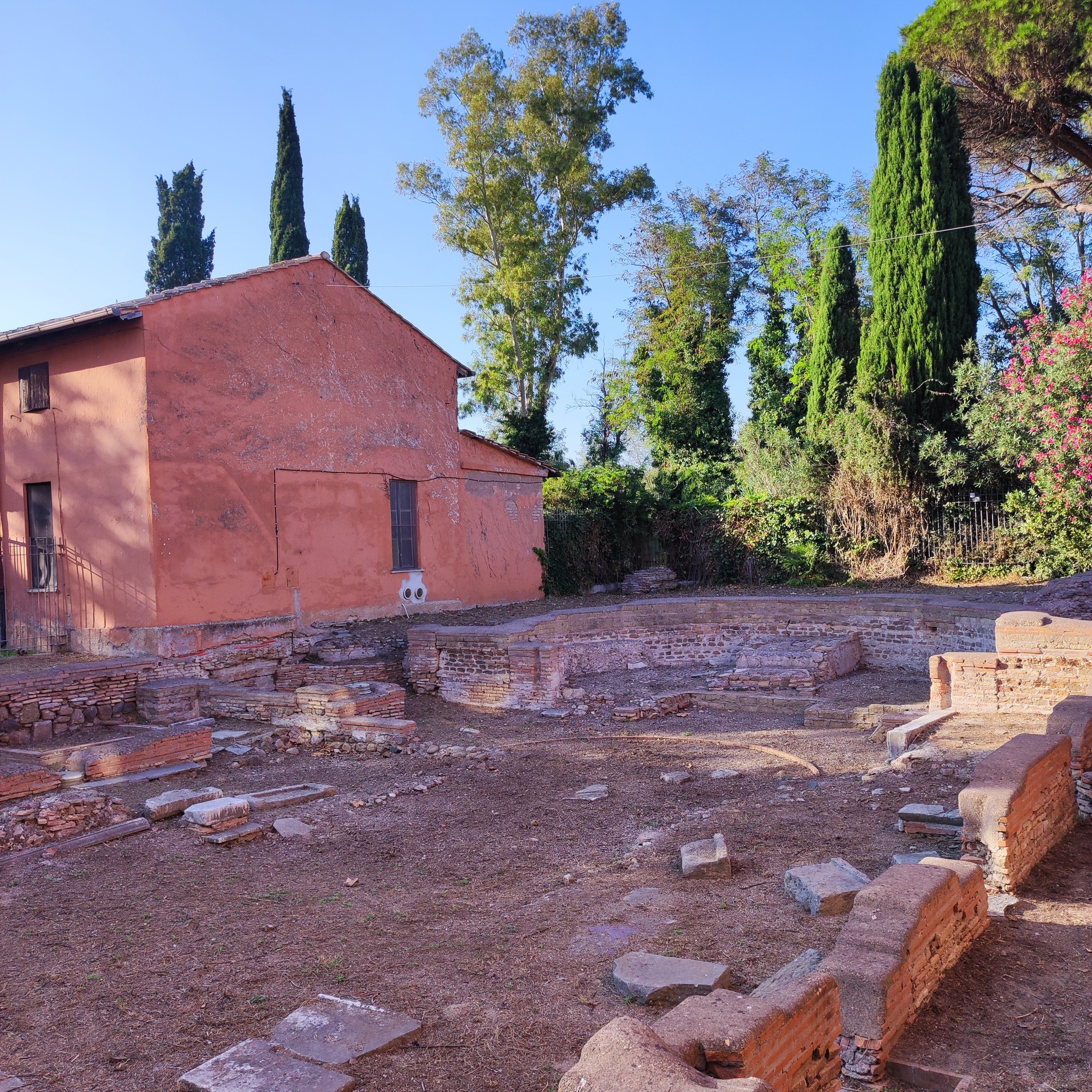 Proseguendo poco più avanti, sempre sul lato di Sant’Ippolito avremmo incontrato in età romana alcuni apprestamenti commerciali connessi con le attività portuali e un impianto termale, chiamato “Terme di Matidia” dal nome della sorella dell’imperatore Traiano che è ricordata anche per un altro motivo: un ponte, che avremmo attraversato in età romana per recarci da Portus all’Isola Sacra: il Ponte di Matidia, che oggi non si conserva, ma del quale conosciamo l’esistenza grazie a un’iscrizione (conservata nell’antiquarium del Conventino) che parla del suo restauro.