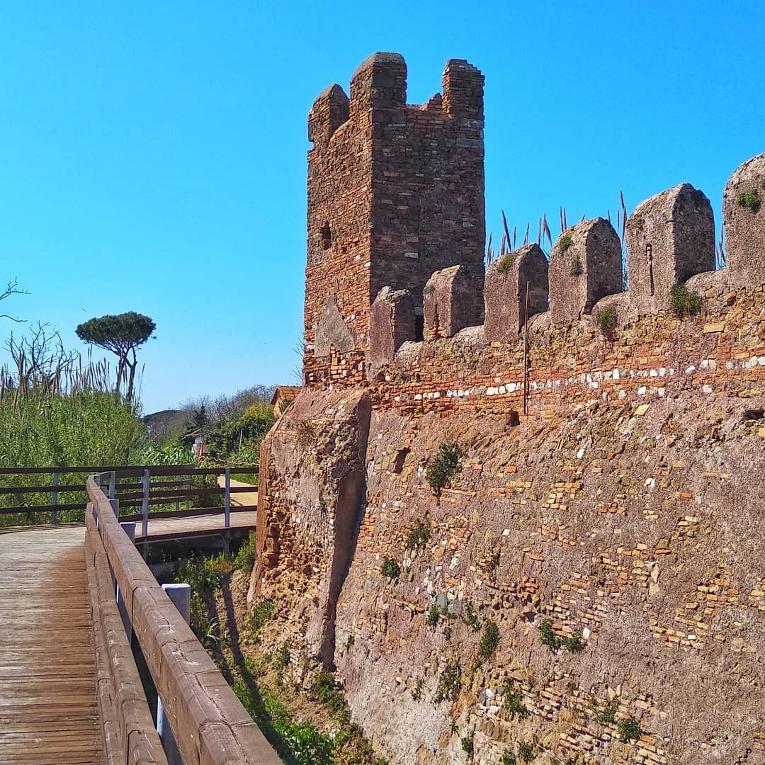 Ridiscendendo oggi da Capo Due Rami verso Fiumicino compiamo un viaggio a ritroso nel tempo. Un tempo comunque molto antico. Prima di tutto incontriamo le mura dell’Episcopio di Porto, oggi un centro religioso e culturale che però fu fondato nel IX secolo dagli abitanti di Porto che si rifugiarono qui, entro una cinta fortificata ma affacciata sul Canale, per difendersi dagli attacchi dei Saraceni. Se oggi si percorre la bella pista ciclabile che risale il Canale di Fiumicino si passa adiacenti alle mura, che sono poderose e magnifiche, anche perché riutilizzano numerosi elementi edilizi provenienti dalla vicina Porto, ormai decaduta, tra cui anche diversi elementi marmorei.